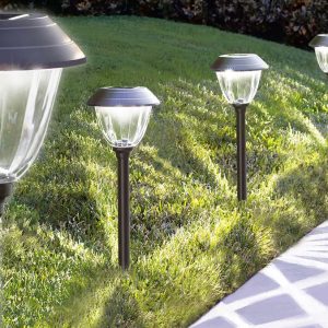 Lighteme 10 Pack Solar LED Pathway Lights Outdoor-Stainless Steel and Glass (Tangerine)