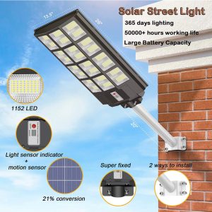 Lighteme 1200W Commercial Solar Street Light . 100000LM Parking Lot Light Dusk to Dawn With Remote