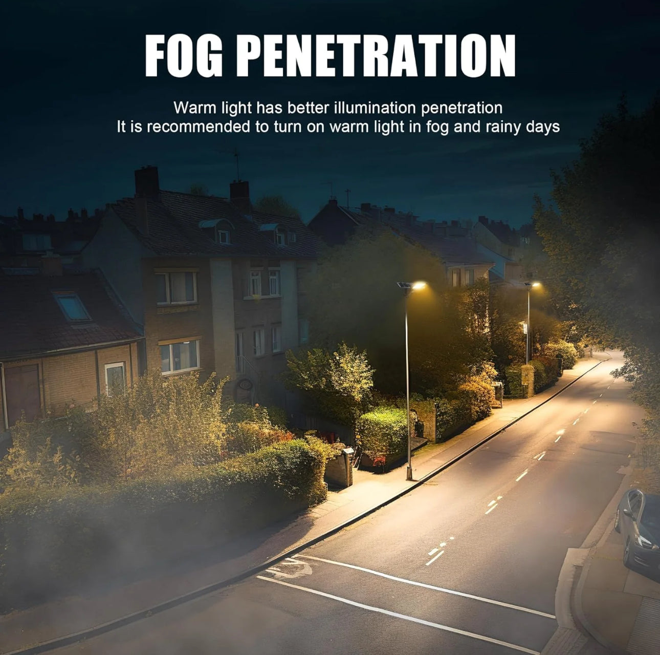 Experience personalized outdoor lighting with three adjustable color temperatures: warm white (3000K). natural white (4000K). and cool white (6500K). Effortlessly switch between cozy. balanced. or vibrant tones to enhance gardens. driveways. parking lots. or commercial areas—no tools or complex settings required.