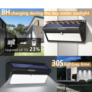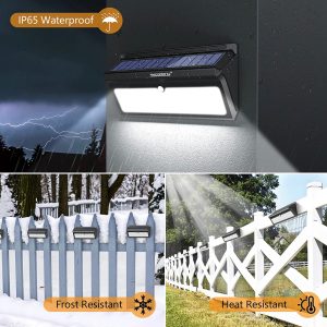 The sensitive PIR motion sensor of these outdoor solar lights can detect movement up to 16 feet away at a 125° detection angle. Both its sensing range and sensitivity are 25% better than similar products.