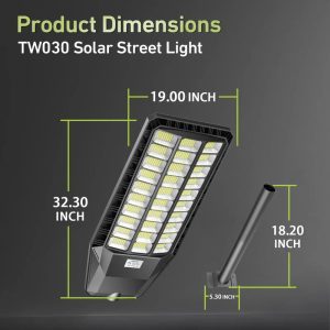 The 3000W Commercial Solar Street Light combines cutting-edge solar technology. industrial durability. and user-friendly controls to deliver a lighting solution that works as hard as you do. Trust in its robust design and smart features to transform dark. expansive areas into well-lit. secure environments—naturally powered by the sun.