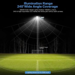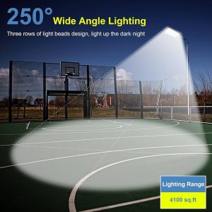 - 1680 SMD 2835 LED Chips: Delivers 60.000 lumens of 6500K daylight-white light. covering up to 3575 sq. ft. with a 240° super-wide angle—ideal for parking lots. highways. and sports courts.