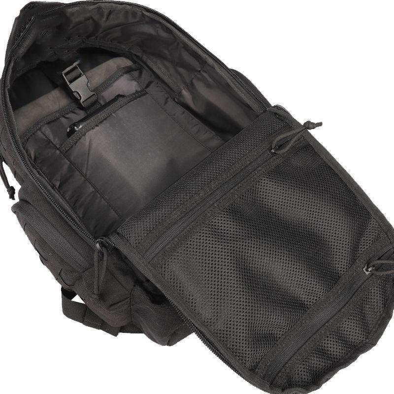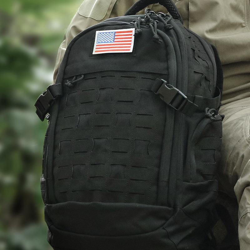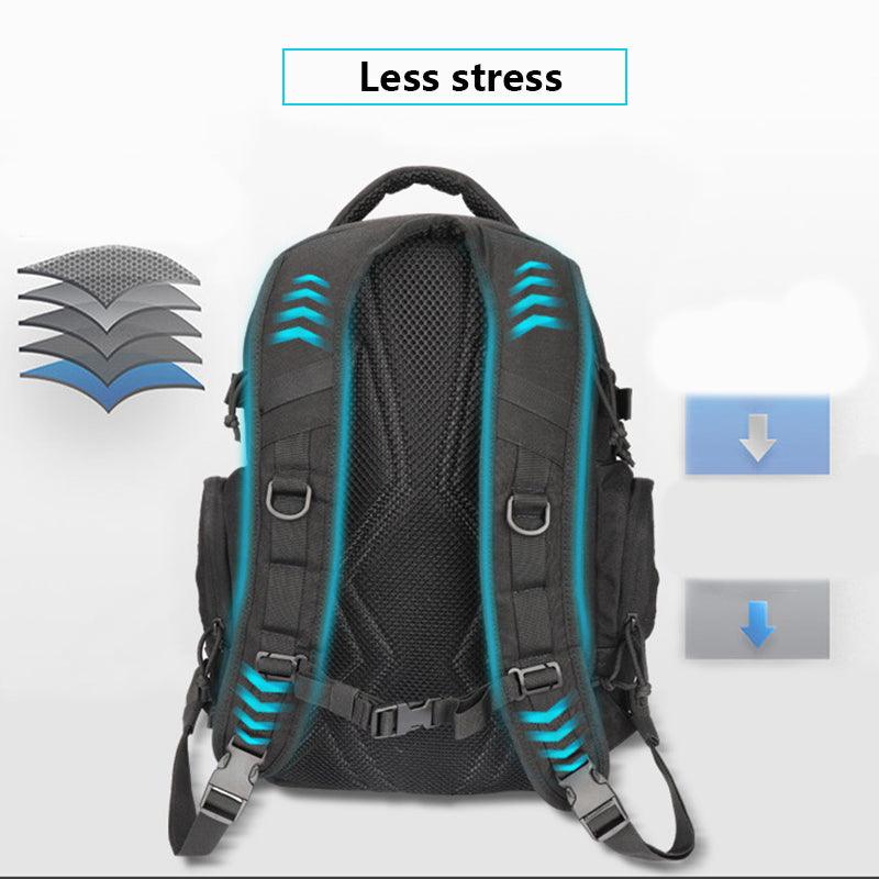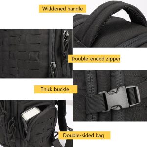 Lighteme 48 Tactical Mountaineering Backpack is designed to hold enough gear for a 48 hours mission. Made from rugged. water-resistant nylon. this pack keeps your gear secure and dry. The shoulder. sternum. and waist straps adjust to provide a custom fit. The yoke system in the shoulder straps distributes weight evenly and thick padding increases comfort. Four pads on the back ventilate and support. while tacky rubber prevents the pack from jostling around when you’re on the move. The spacious main storage compartments provide ample storage for big items. while smaller zippered pockets. key chain fobs and pockets with retention straps organize smaller gear.