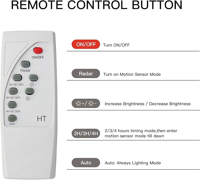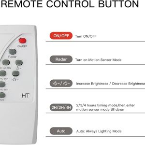 - Multi-Mode Remote Control: Adjust lighting modes (full brightness. dim. timer) from up to 32.8ft (10m) away. ideal for convenient operation in hard-to-reach areas. Enjoy hands-free convenience while optimizing energy usage.