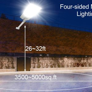 - Four-Sided Multi-Array Design: Illuminates a 3x larger area than traditional solar lights and 2x wider than dual-sided models. covering up to 180㎡ with minimal dark spots.