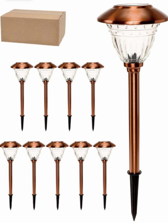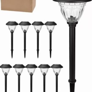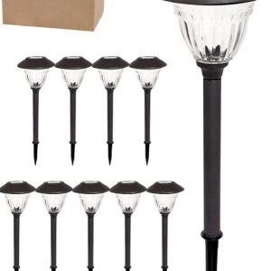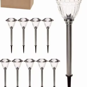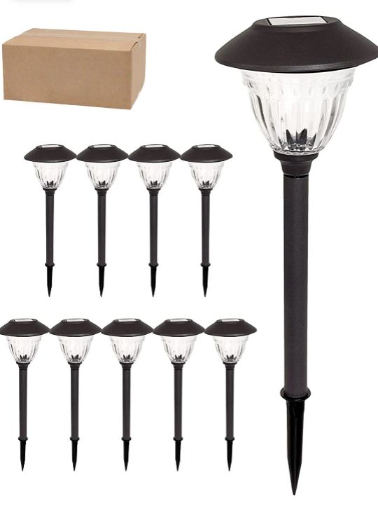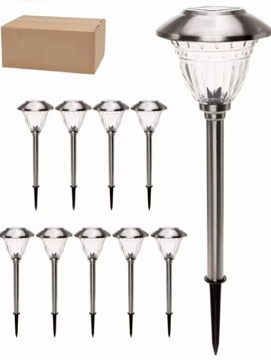 Lighteme 10 Pack Solar LED Pathway Lights Outdoor-Stainless Steel