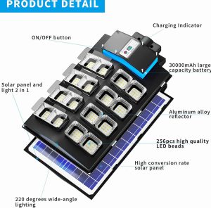 - 40.000mAh Large-Capacity Battery: Provides 20+ hours of continuous lighting (6–8 hours full charge in direct sunlight).