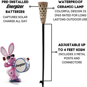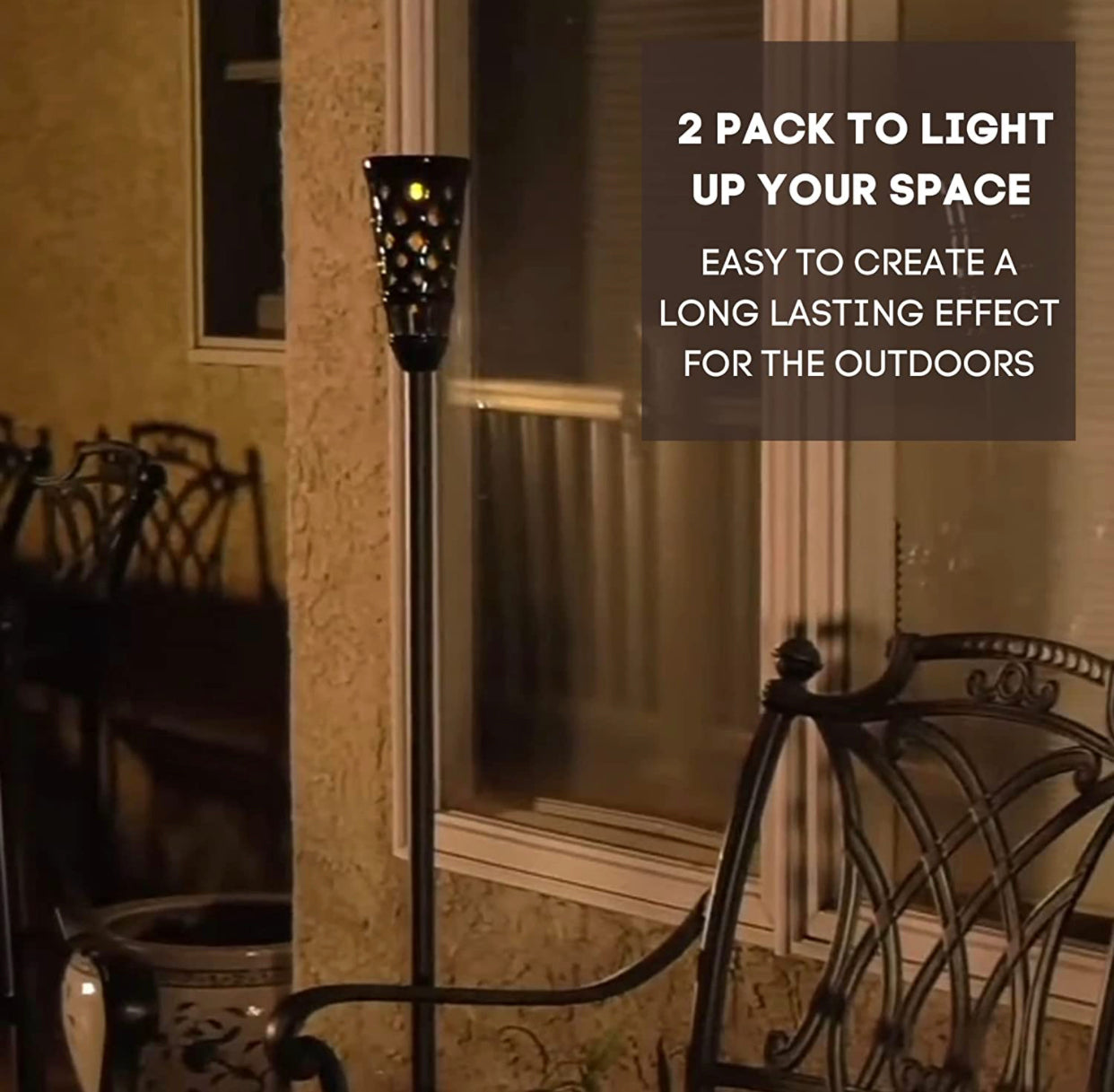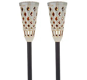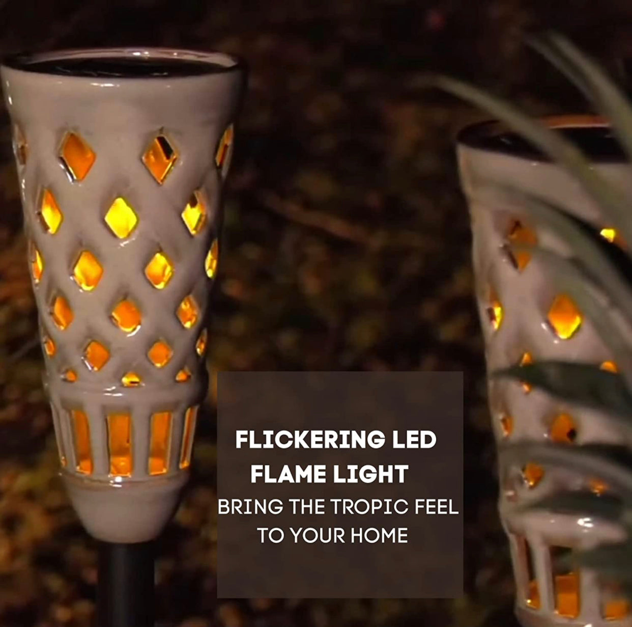 Lighteme LED Ceramic Solar Tiki Torch Lights Dancing Lights Outdoor Waterproof 2 Pack