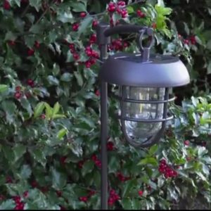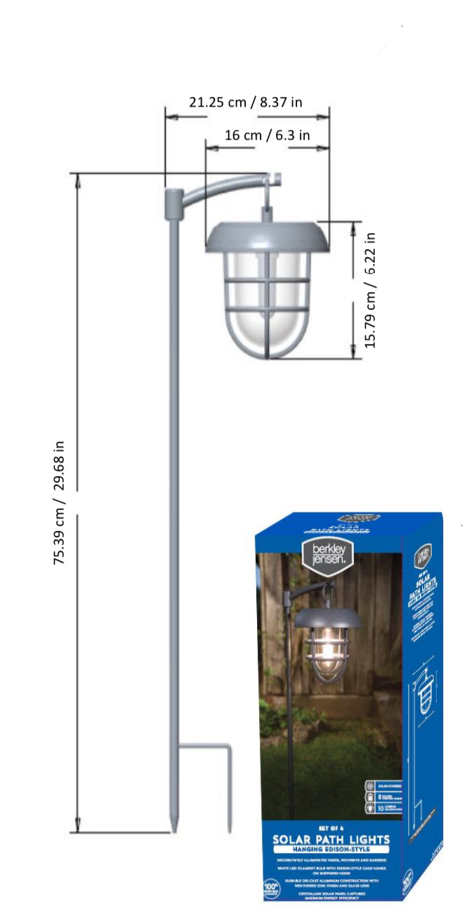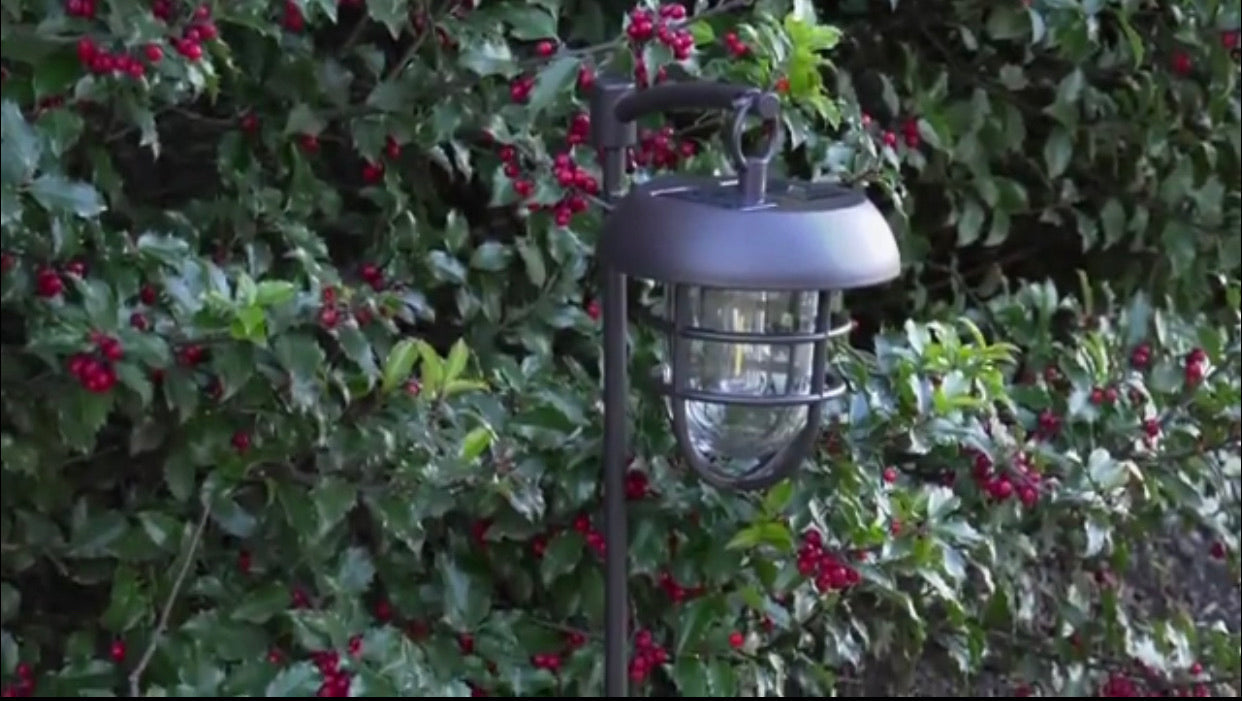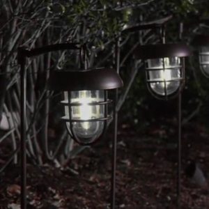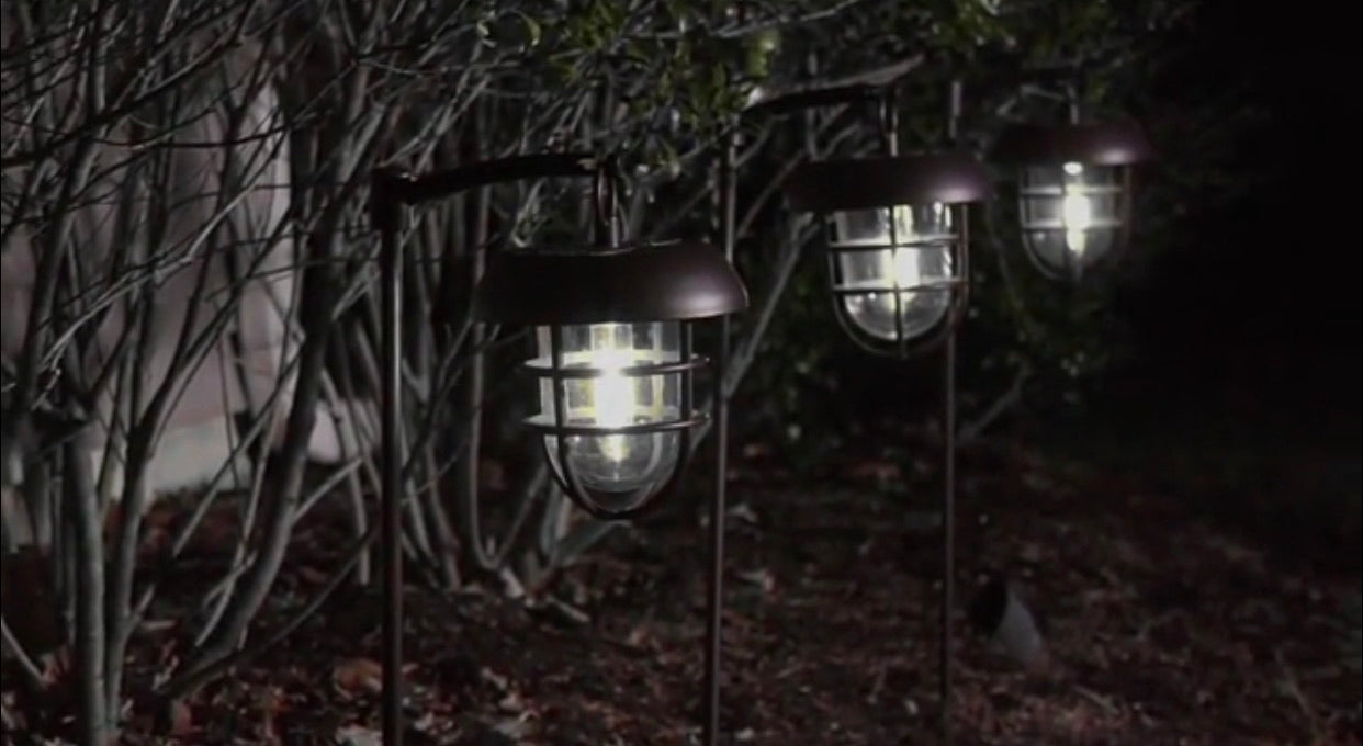 Lighteme LED Solar Hanging Lights on Shepherds Hook Metal Pole (Set of 4)