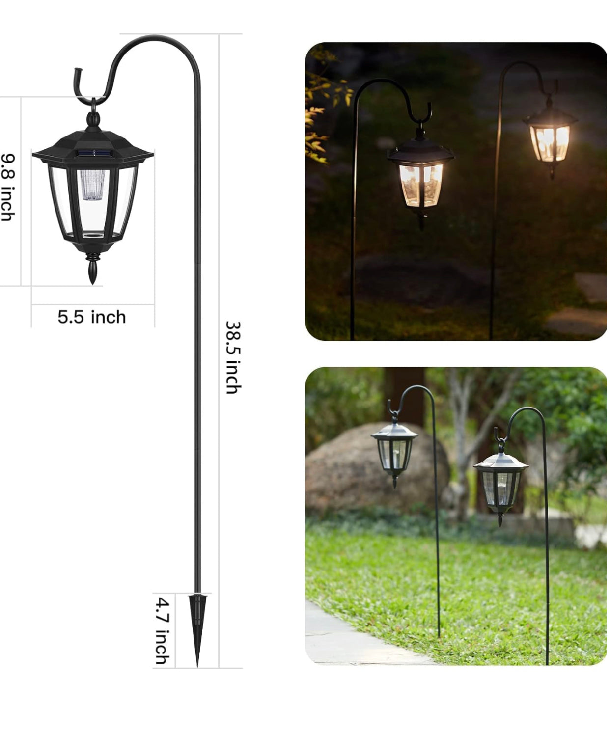 - Dimensions: 6.3 L x 6.3 W x 34 H (including stake height).