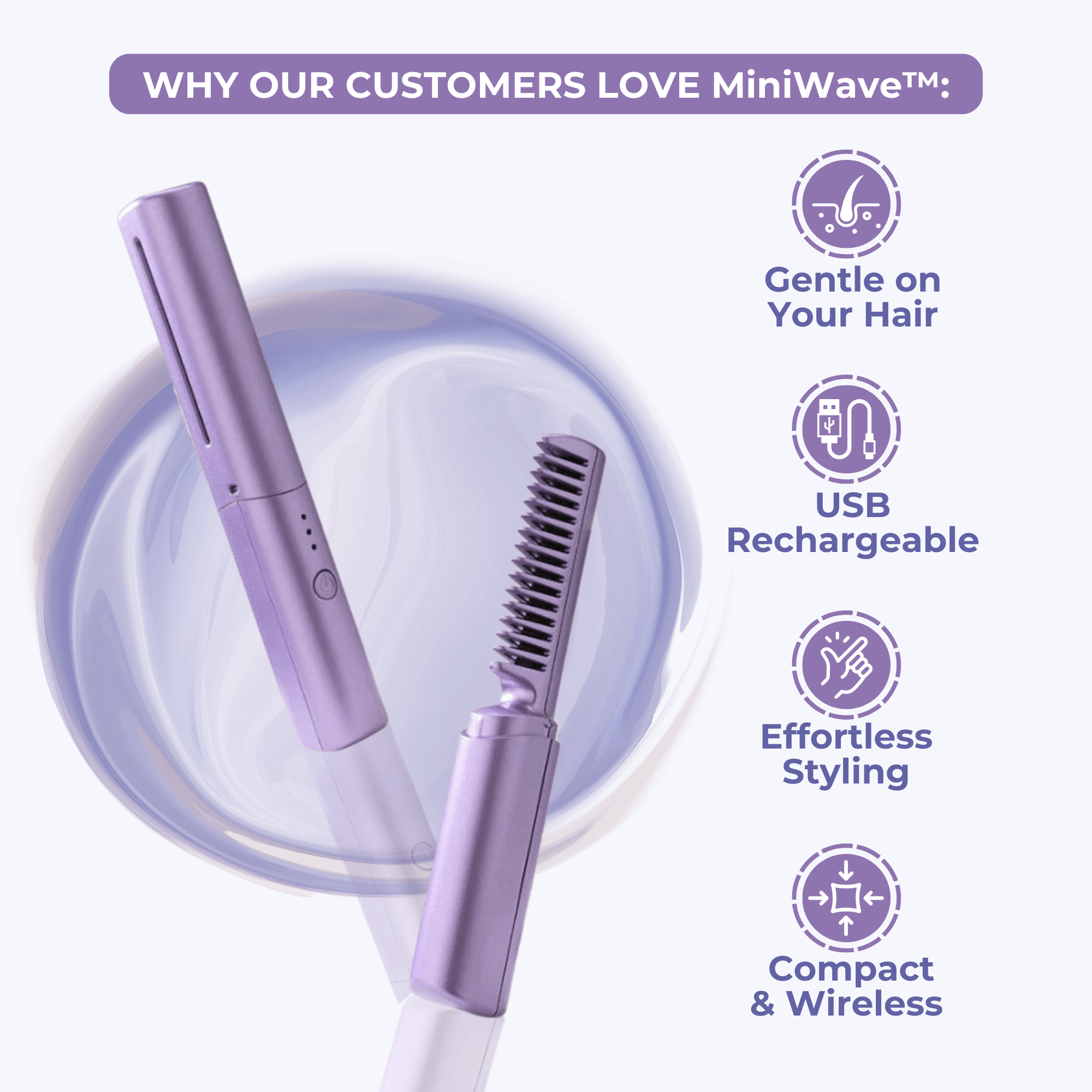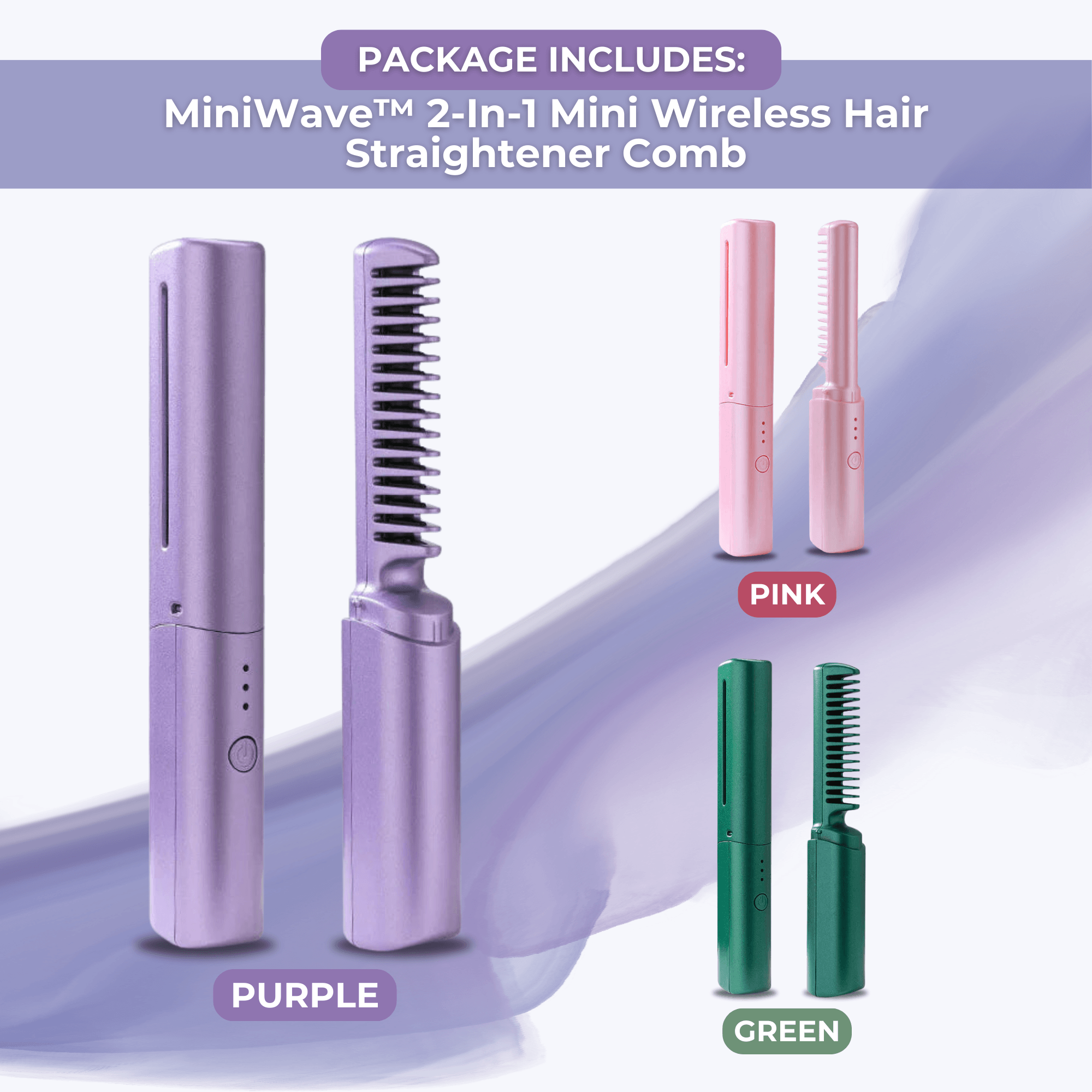 Lighteme 2-In-1 Mini Wireless Hair Straightener Combglides through your hair. creating silky smooth curls or head-turning waves in minutes.
