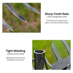✔ High-Quality Construction – The sturdy rake has flexible tines that effectively gather debris. while the sharp hoe blade effortlessly cuts through soil and roots.