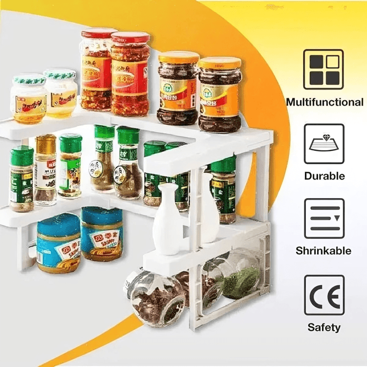 Our StackRack 2-Tier Stackable Spice Organizer offers a flexible. space-saving solution. No tools are needed for installation—just adjust the shelves to fit your needs. Perfect for organizing spices. medications. and cosmetics. its expandable design lets you maximize space. whether side-by-side or stacked. Simplify your organization and boost your efficiency in the kitchen!