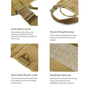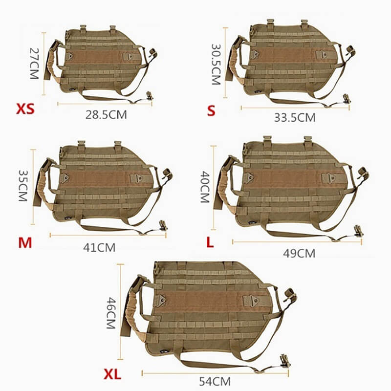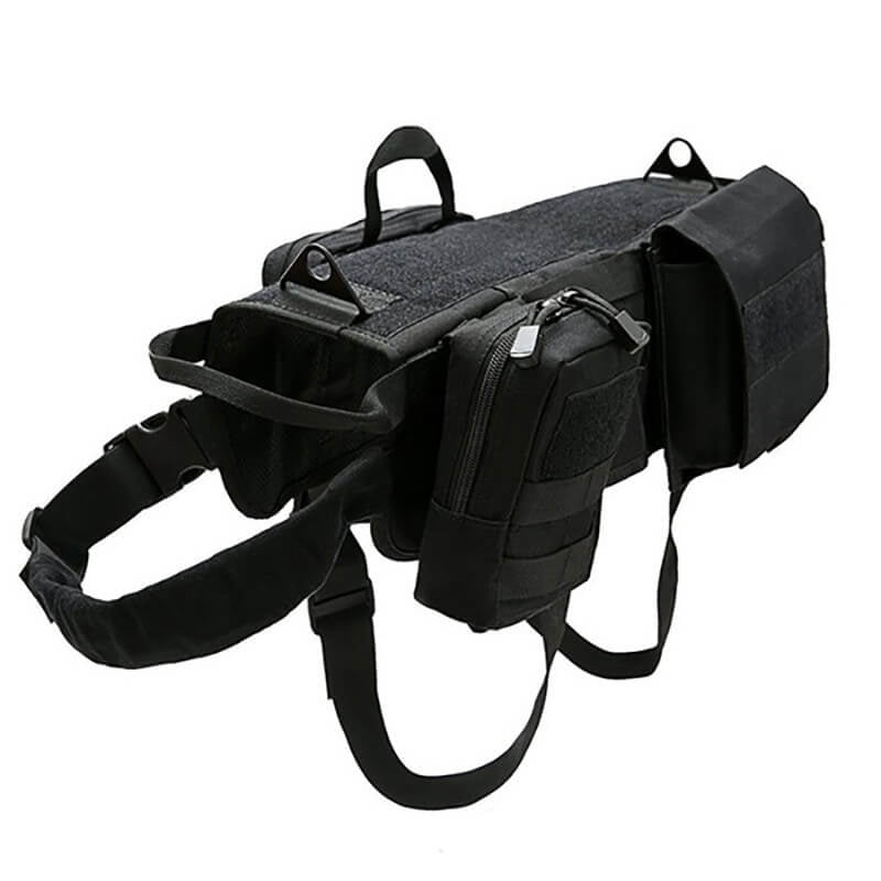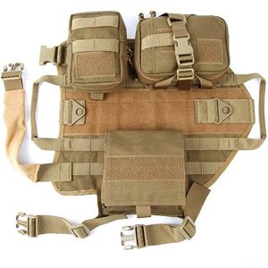 The Tactical Dog Harness Adjustable Training Molle Vest with 3 Detachable Pouches is made of army 1000D nylon which has high quality and scratch resistant. Each strap can be adjustable for wearing stability and comfort. reducing the rask of Abrasions to their bodies. It is ideal for outdoor activities and training. Both sides of the dog harness are molle-type design. It comes with 3 detachable pouches which can be added on the vest. HOOk&LOOP panel on the top and detachable pouches is for ID Badges. You can DIY your dog’s own style. Putting it on. your dog will look very handsome and cool.