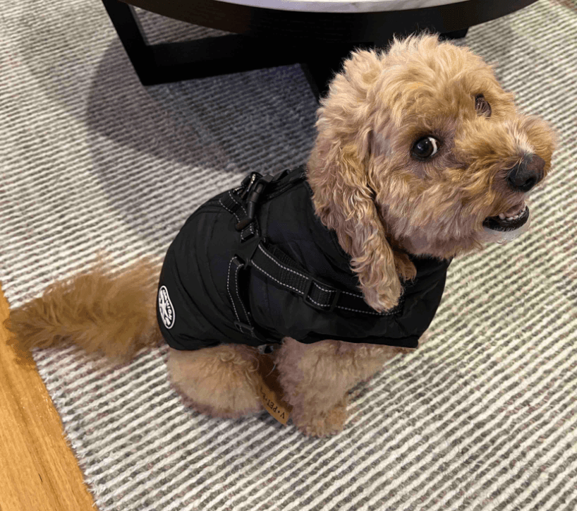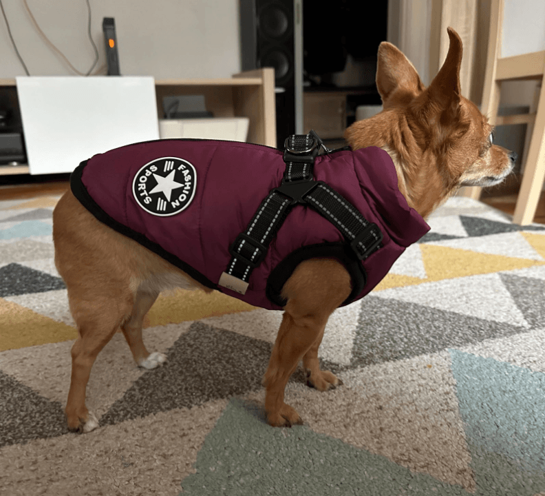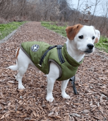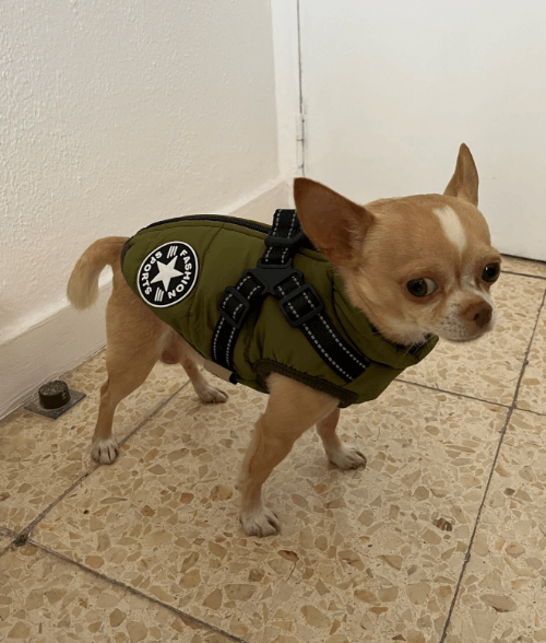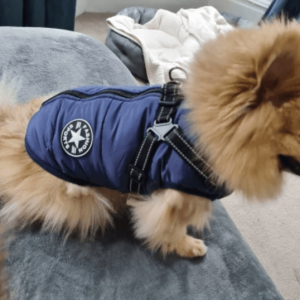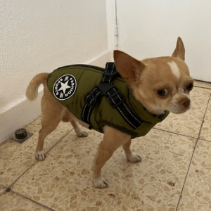 With his new jacket. your pup will be able to go outside with you for hours without being cold. while being safe and comfortable. He’ll also be able to play with other dogs!