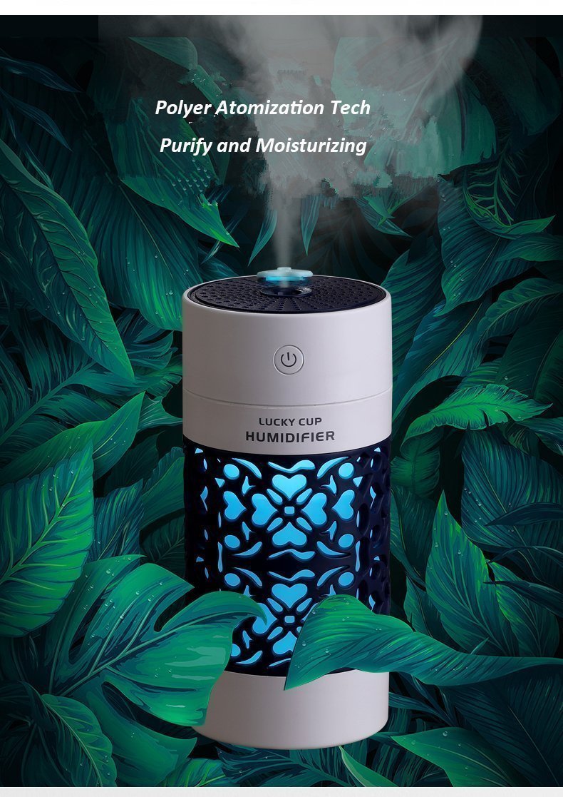 - The appearance adopts the hollowed-out grass pattern to add features. the transparent water tank water level line is clear at a glance. and the colorful atmosphere light function is also indispensable.