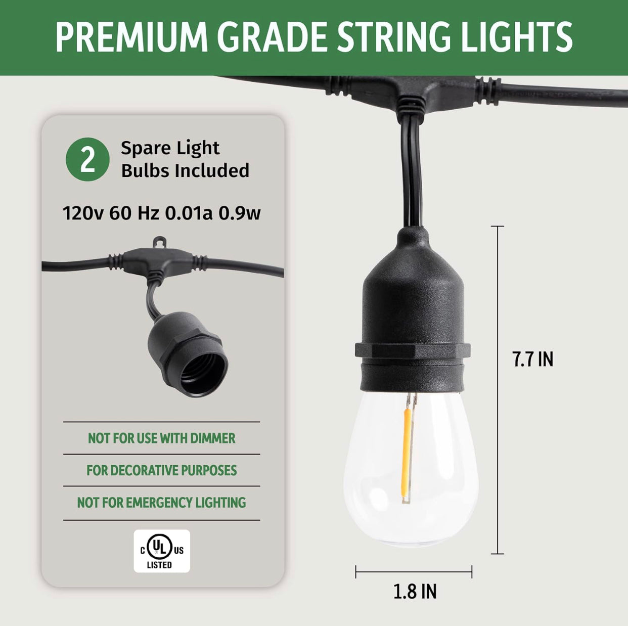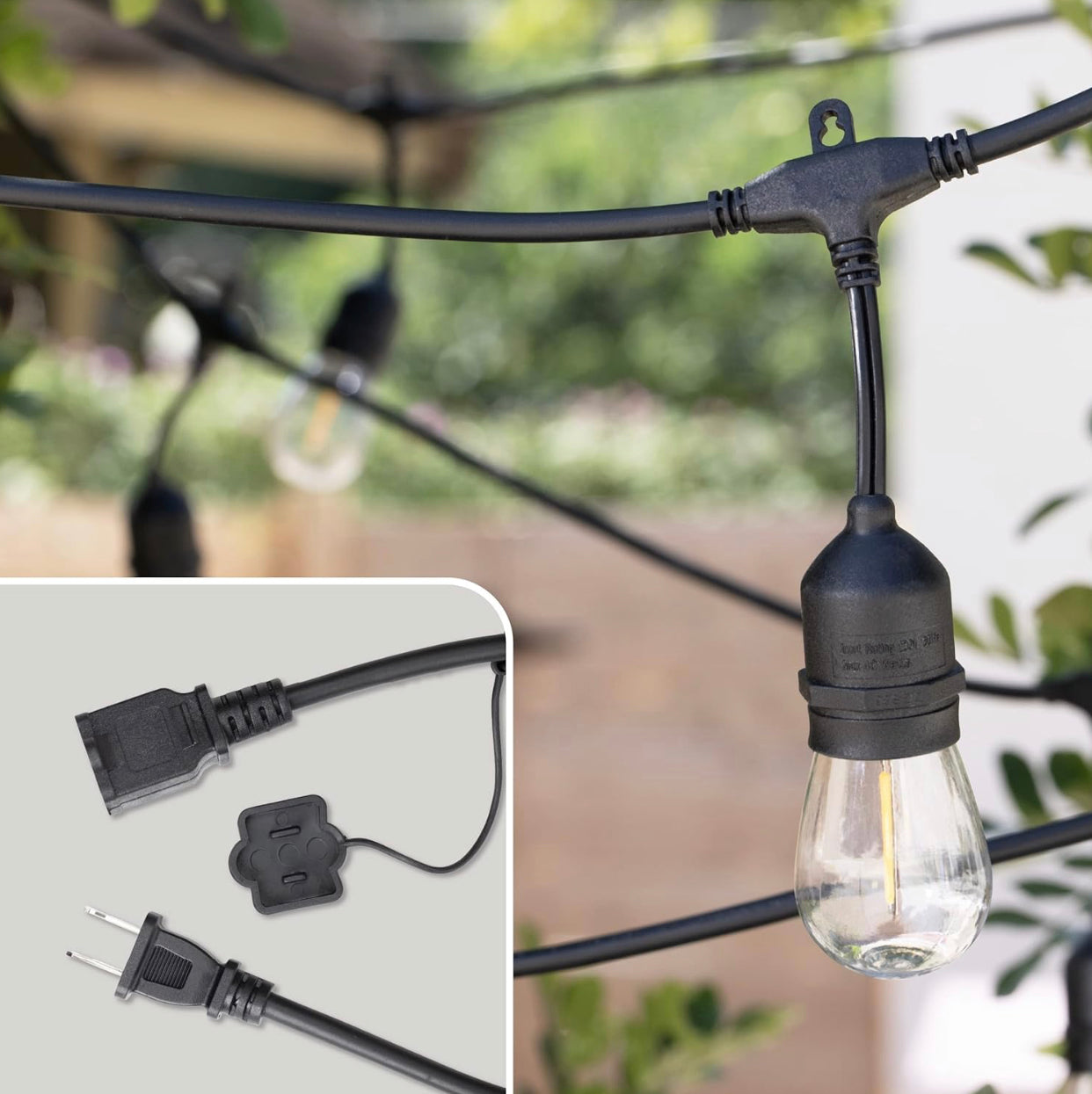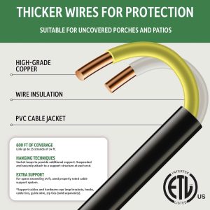 Lighteme 48FT Outdoor LED String Lights Plug-In – 24 Shatter Resistant and Waterproof Bulbs – Commercial Grade – UL Listed Heavy Duty Wire