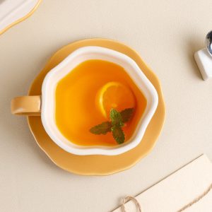 - Ergonomic Design: The cup’s curved shape fits comfortably in the hand. while the saucer’s wide rim prevents spills and adds a touch of elegance to every sip.