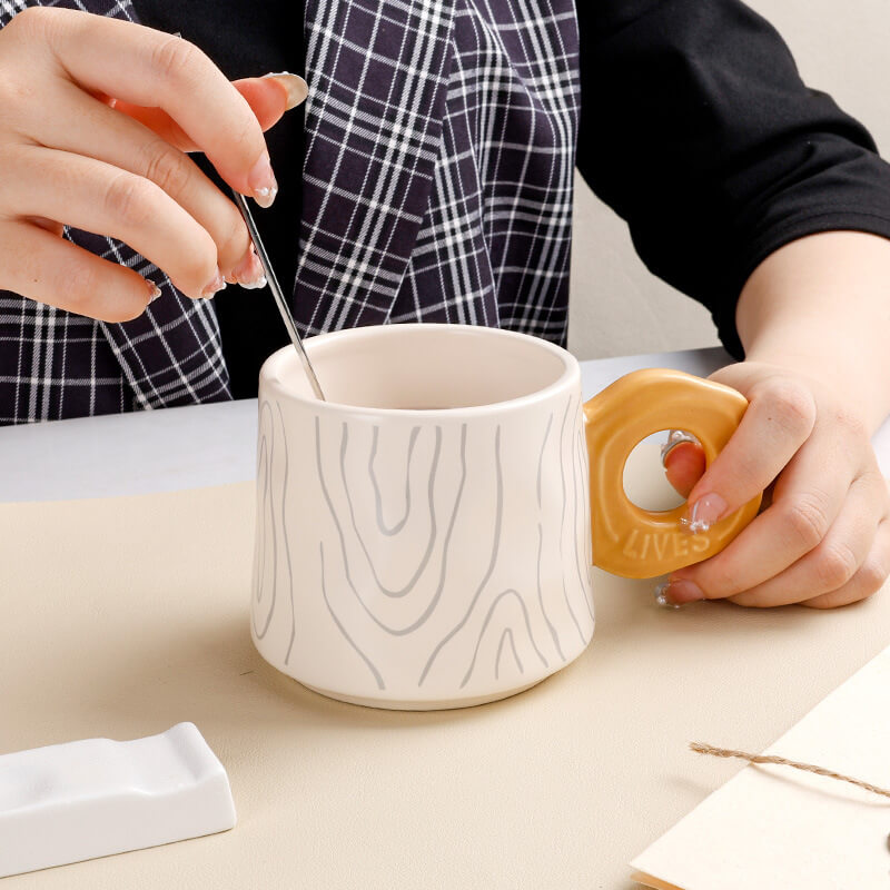 The Lighteme Annual Ring Mug Set is a sophisticated blend of minimalist design and organic inspiration. perfect for elevating your coffee or tea experience. Crafted from high-quality ceramic. this set features a subtle tree ring pattern. evoking the timeless beauty of nature while maintaining a sleek. modern aesthetic. Ideal for personal use. coffee shops. or gifting. it seamlessly combines functionality with understated elegance.