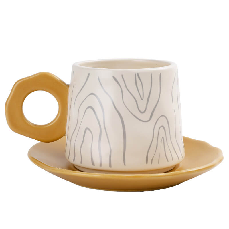 - Coordinated Set: The cup and saucer are designed to harmonize. with the tree ring pattern seamlessly transitioning from the cup’s surface to the saucer. creating a cohesive visual narrative.