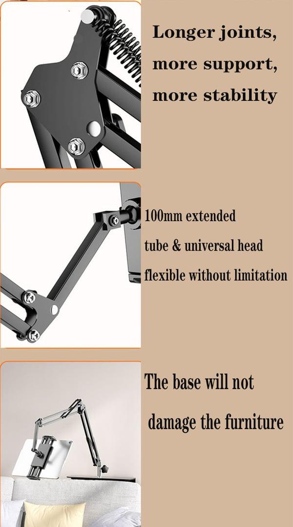 Designed with your comfort and convenience in mind. this revolutionary holder eliminates the need for clip-on accessories that can damage your furniture. Simply slide it into any gap or surface. whether it’s your bed frame. sofa arm. or desk. and enjoy hands-free viewing from any angle!