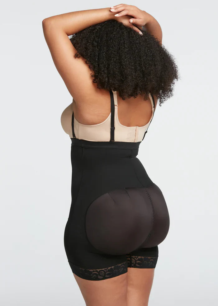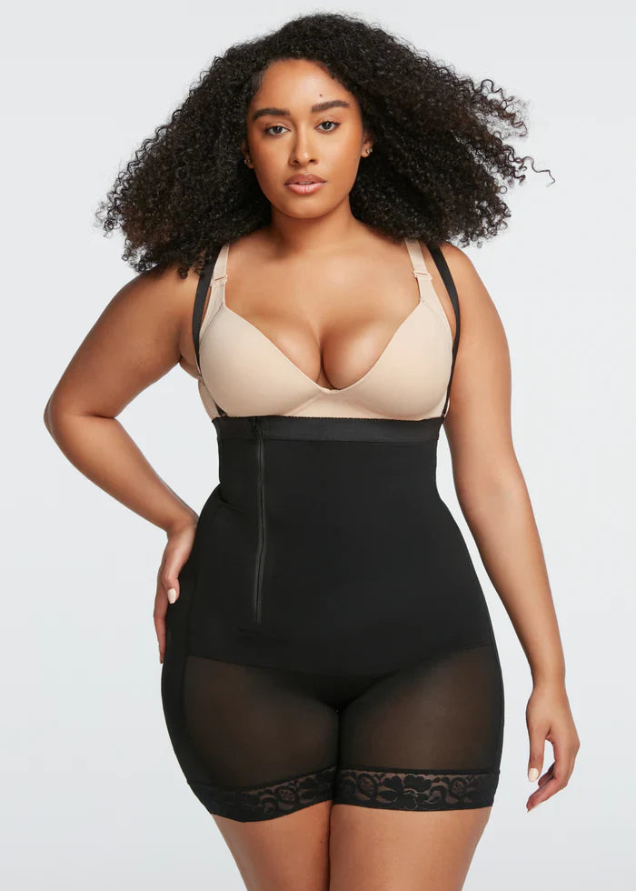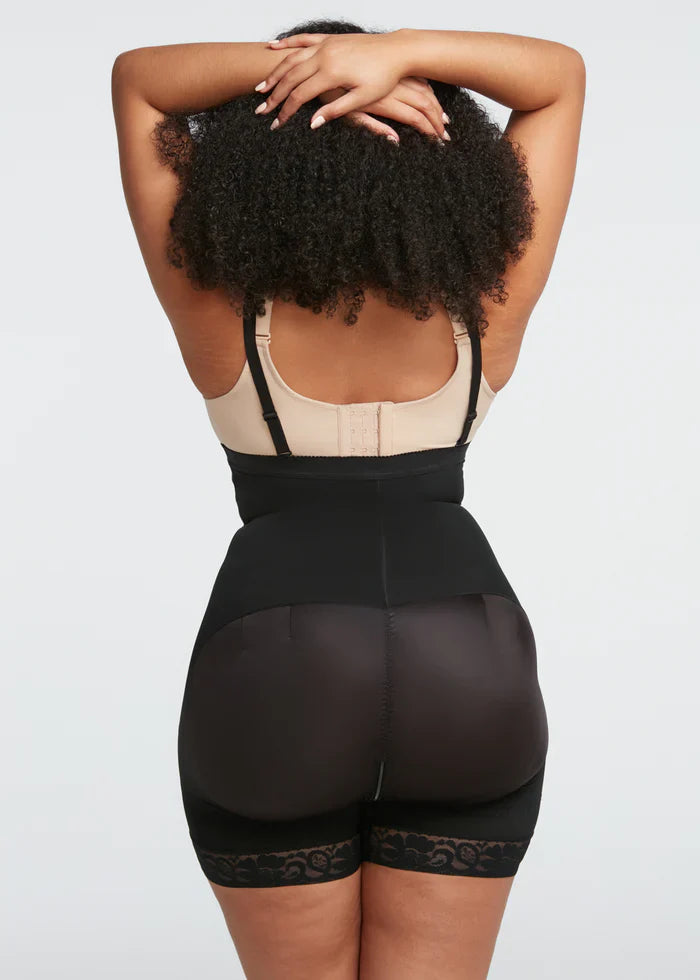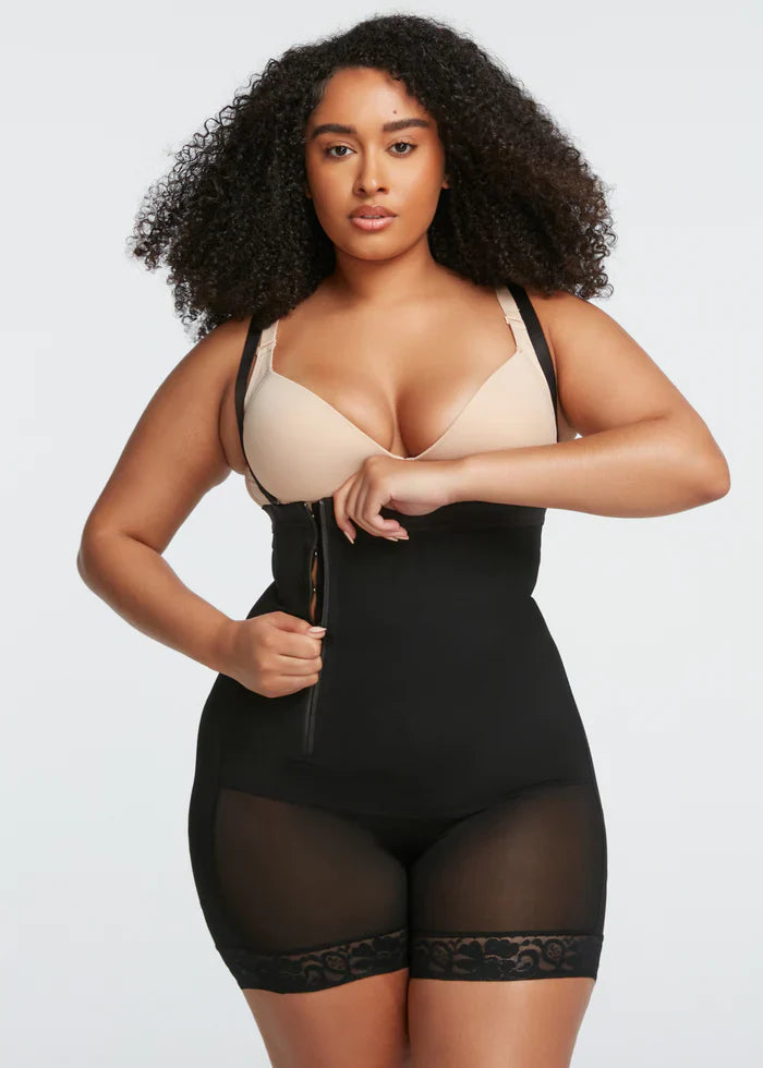 This is the open bust body shaper is all you’ve been waiting for! It’s made with high waisted firm compression fabric to shape your torso and thighs. Designed to also give your butt a boosted lift. It beautifully combines comfort. compression. and convenience.