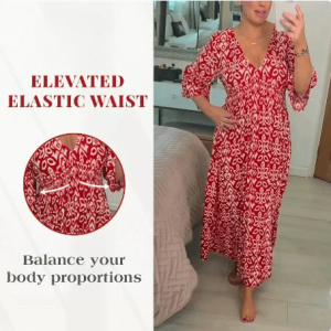 With versatile flare sleeves and a loose elastic waist. you’ll enjoy effortless movement and timeless elegance.