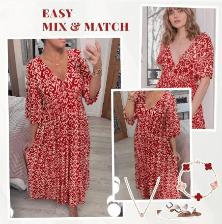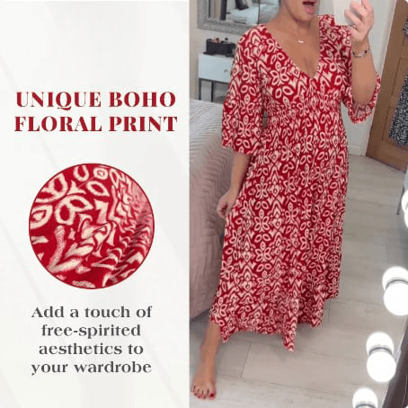 Transform your look and elevate your style effortlessly with our Lighteme Boho Print V-Neck Maxi Dress. designed to make you feel free-spirited and chic in an instant.
