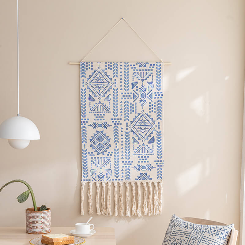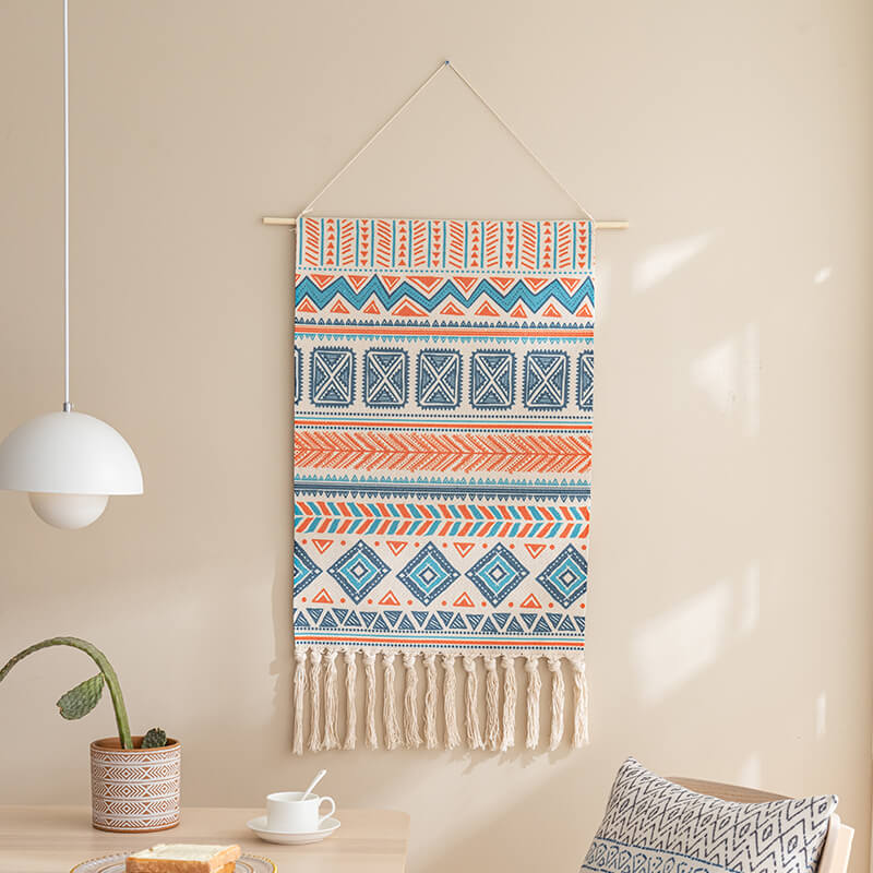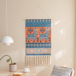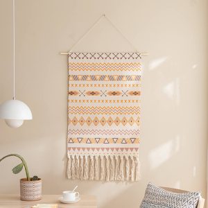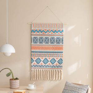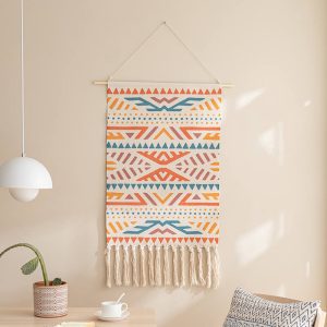 - Gentle Cleaning: To keep the wall hanging looking its best. it’s essential to follow the care instructions. Since it should not be washed with water. using a dust remover regularly is the recommended cleaning method. This helps to remove dust and debris from the woven surface and the tassels. preserving its appearance.