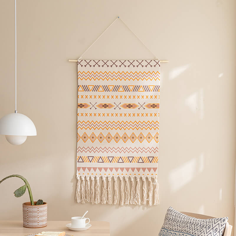 - Bohemian Flair: Tassels are an iconic element of bohemian decor. and their presence on this wall hanging adds an authentic boho touch. They contribute to the overall free-spirited and laid-back atmosphere. making your home feel more welcoming and relaxed.