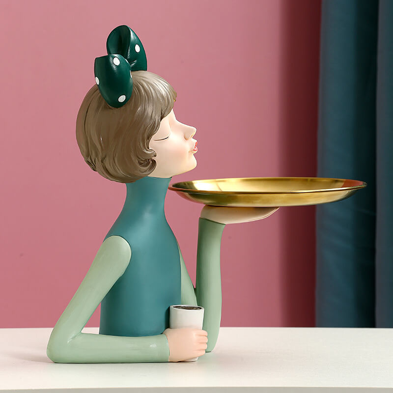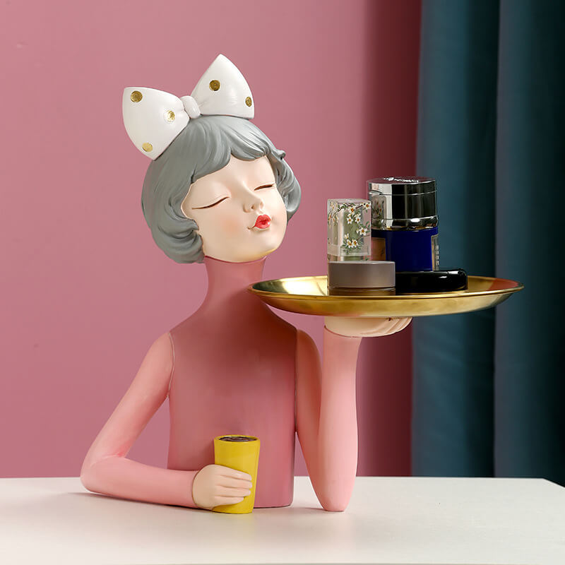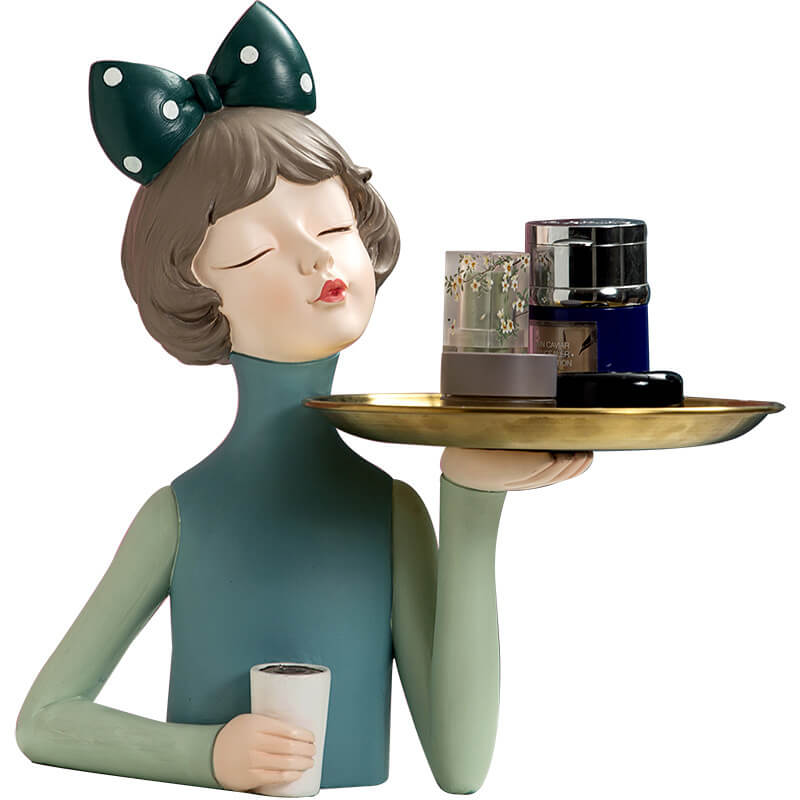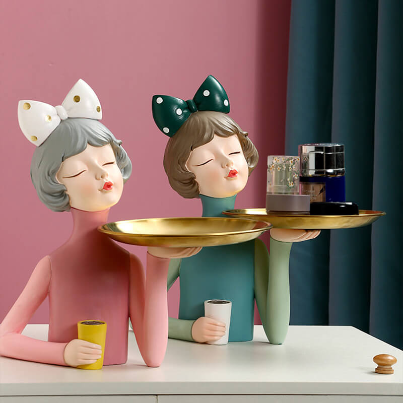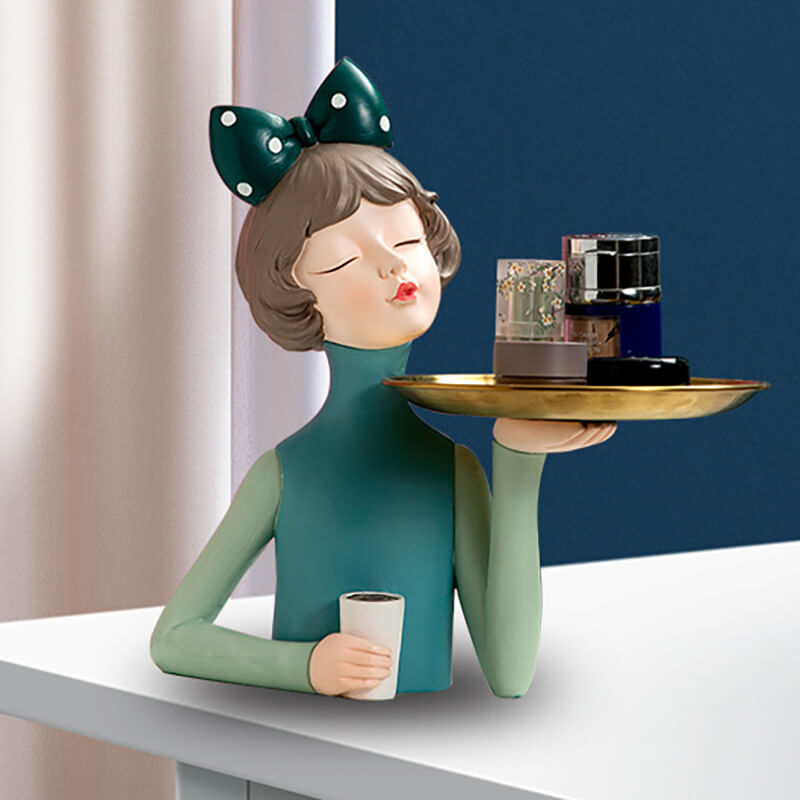 - Enhancing the Living Space: This bowknot coffee girl resin storage decoration can significantly enhance the living space. Its unique design and resin material create a sense of elegance and functionality. It can be placed in different areas of the home. such as the living room. bedroom. or study. to add a touch of charm and organization. The storage space allows for the convenient storage of small items. making it a valuable addition to your home decor collection.