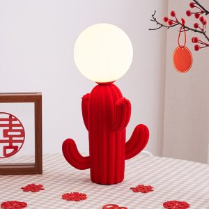 - Cartoon Cactus Motif: The lamp showcases a plump cactus with a cheerful face. oversized eyes. and a playful pose—either holding a glowing moon (glass sphere) or topped with a whimsical flower. Available in pink (with soft magenta spikes) or red (with bold crimson tones). each cactus exudes personality and charm.