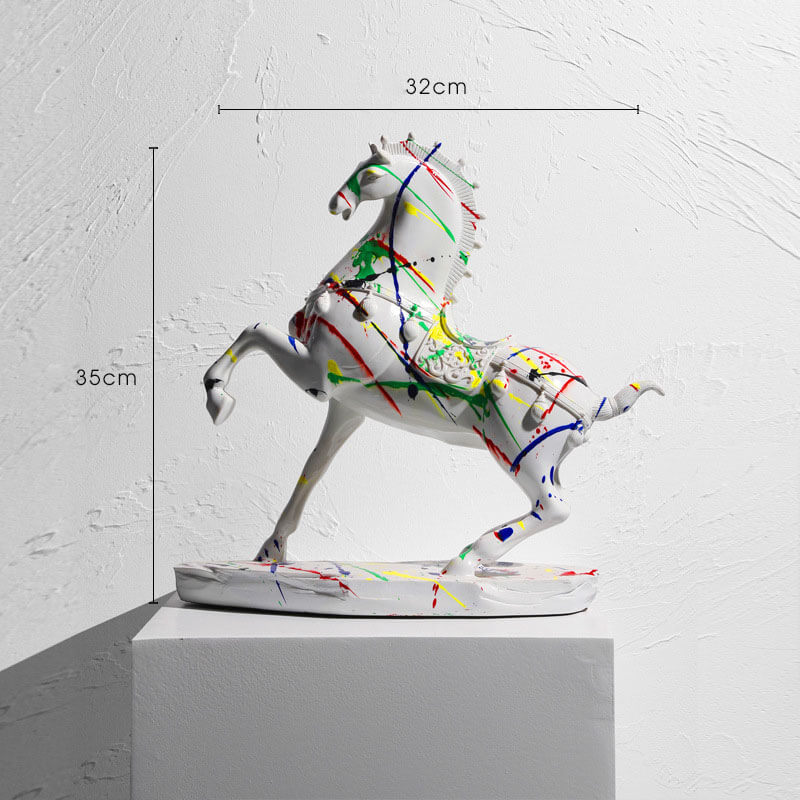 Revitalize your living space with this bold resin horse sculpture. blending edgy camouflage patterns with vibrant pop art hues. Designed to juxtapose military motifs and playful colors. it creates a striking focal point for modern. eclectic. or luxury interiors.
