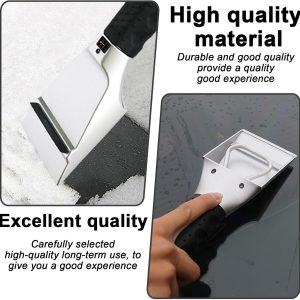 ✅ Comfortable Handle with Wiper Blades – The ergonomic. rubberized handle provides a secure grip. even when wearing gloves. and the wiper blades efficiently clean the glass for a clear view. making winter mornings a breeze!