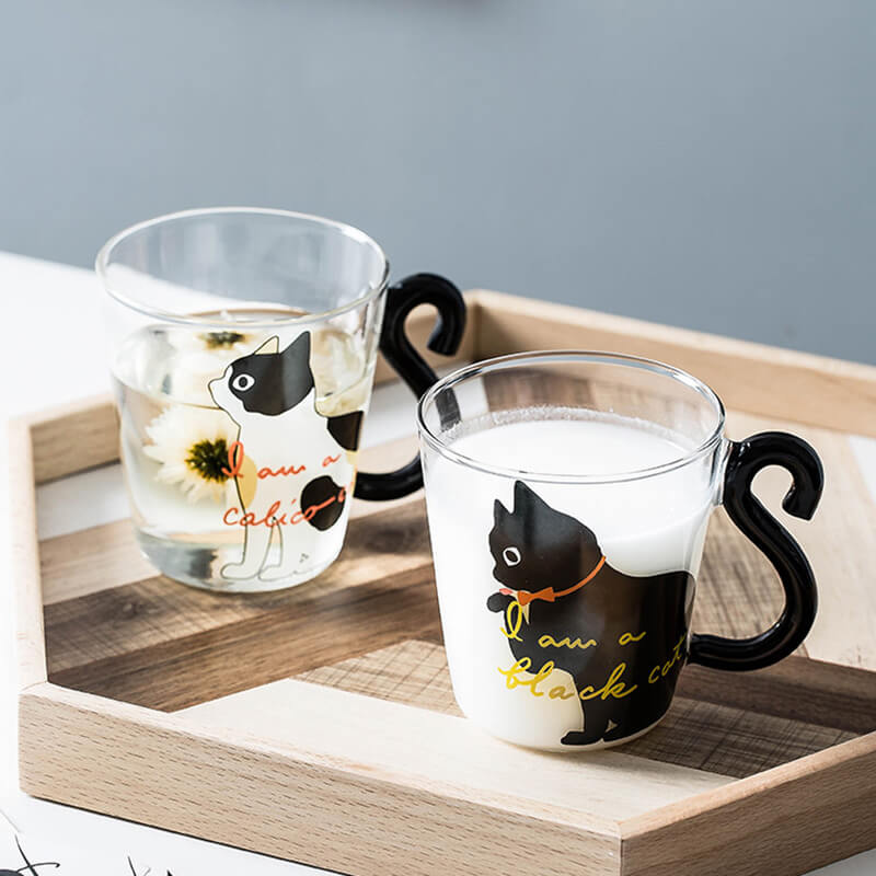 Lighteme Cat Tail Handle Glass Cup – Where whimsy meets functionality. turning every sip into a purr-fect experience.