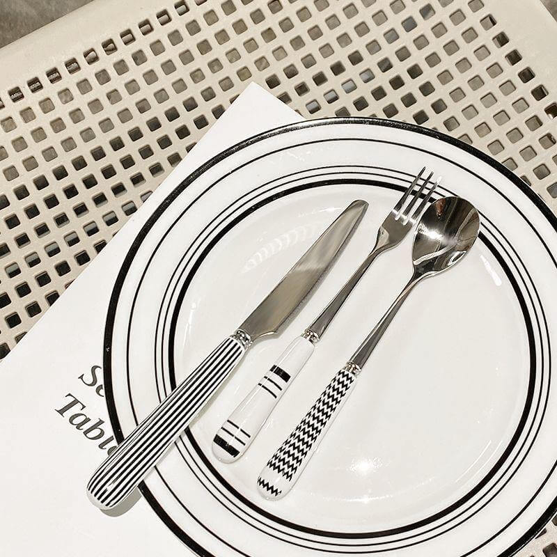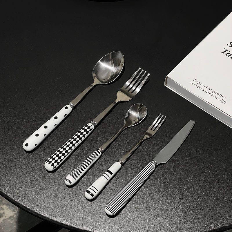 - Comfortable Grip: The ergonomic ceramic handles provide a smooth. comfortable hold. making them suitable for both formal meals and casual dining. The contrast between the cool ceramic and the stainless steel utensils adds a touch of luxury.