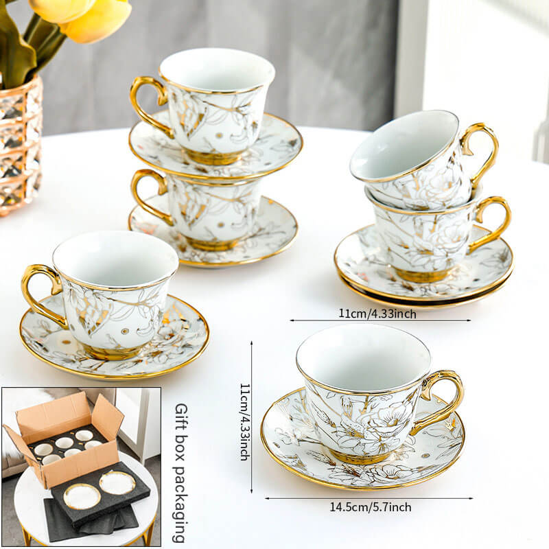 Indulge in the opulence of a bygone era with the Lighteme Coffee Cup Gold Edge Set. where retro charm meets modern luxury. Adorned with intricate golden floral motifs. this ceramic set transforms every coffee break or afternoon tea into a celebration of refined taste and sophistication.