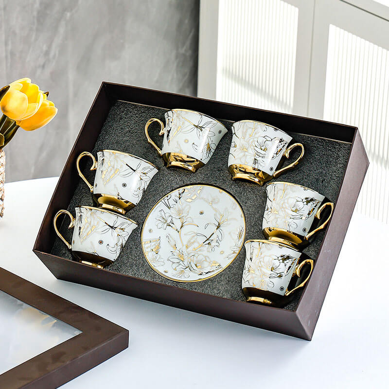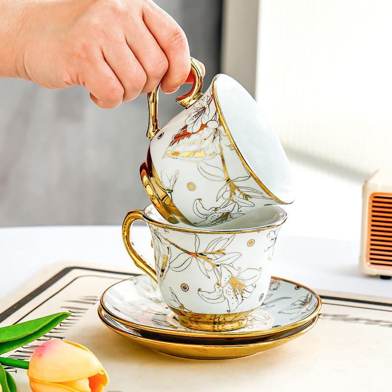 Lighteme Coffee Cup Gold Edge Set – Where every sip is a brushstroke of grandeur.