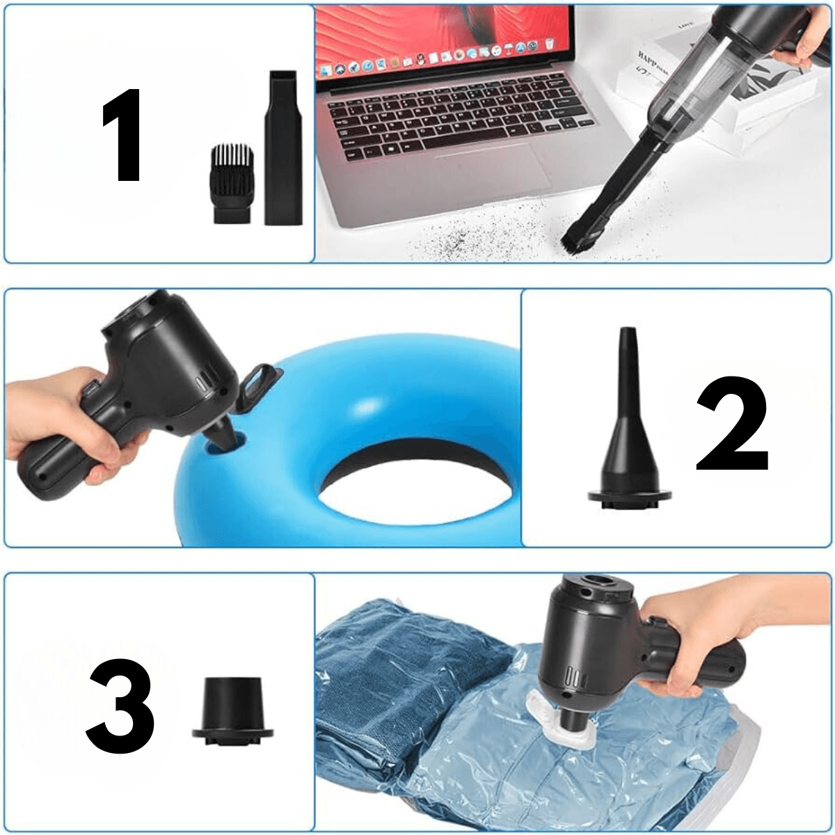 ✔️ Versatile Attachments – Equipped with various attachments like the compression vacuum. inflatable floating ring pump. and 3-in-1 dust collector. this vacuum is designed for every cleaning need.