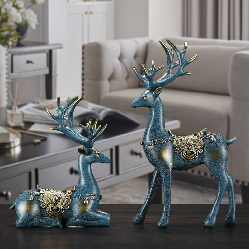 - Aesthetic Appeal: The couple deer design of these resin ornaments is a standout feature. It brings a sense of warmth and charm to the room. The detailed craftsmanship of the deer. combined with the natural resin material. creates a visually appealing display. Whether placed on a shelf. table. or mantel. the ornaments draw the eye and add a touch of sophistication to the decor. The gold and blue color options further enhance their elegance. making them suitable for various modern and luxurious decor styles.