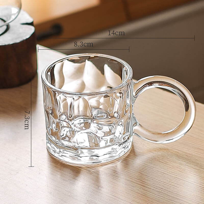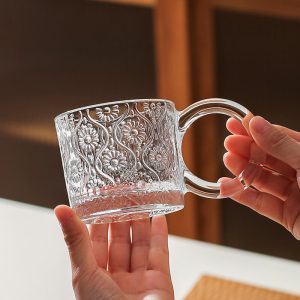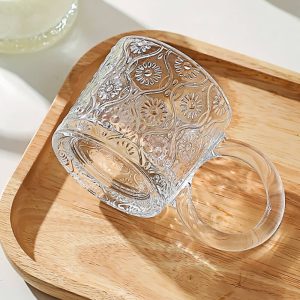 Elevate your beverage experience with the Lighteme Creative Embossed Glass Cup. a masterful blend of aesthetic innovation and practical design. Featuring a tactile embossed pattern and a large ergonomic handle. this cup combines visual intrigue with everyday usability. making it a standout addition for coffee aficionados. tea lovers. and drinkware collectors.