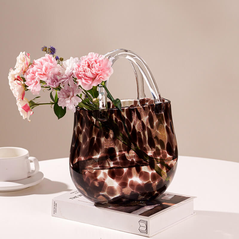 Elevate your interiors with this daring leopard-print glass vase. merging wild elegance with modern sophistication. Its translucent design allows light to accentuate the striking pattern. creating a dynamic focal point for tabletops. shelves. or eclectic spaces.
