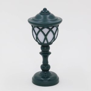 - Detailed Miniature Design: The lamp features a nostalgic street lamp design with a textured metal finish. complete with a decorative lampshade. post. and base. Crafted from durable ABS and PP materials. it mimics the look of a traditional cast-iron street lamp. available in classic colors like black. white. or green.