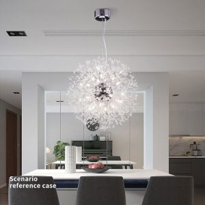 - Floating Crystal Strands: The chandelier showcases multiple dandelion heads. each composed of fine crystal beads or prisms that mimic the delicate fluff of dandelion seeds. When lit. these crystals refract light into a dazzling display of rainbows. creating a magical. airy ambiance.