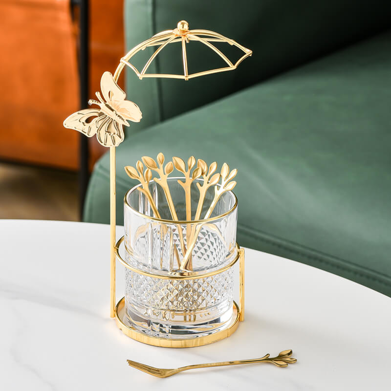 - Visibility and Practicality: The clear glass container of the storage jar allows you to easily see the dessert forks and spoons inside. This makes it convenient to access the utensils when needed. Whether you’re serving dessert or simply organizing your kitchen. the clear glass ensures that you can quickly identify the contents of the jar. The glass is also easy to clean. making it a practical choice for storing utensils.