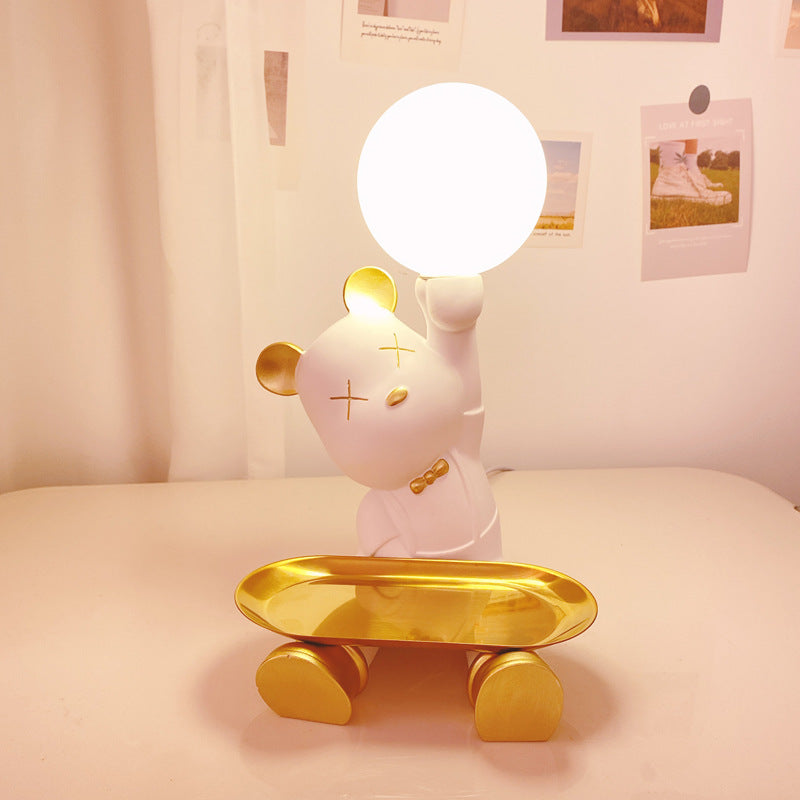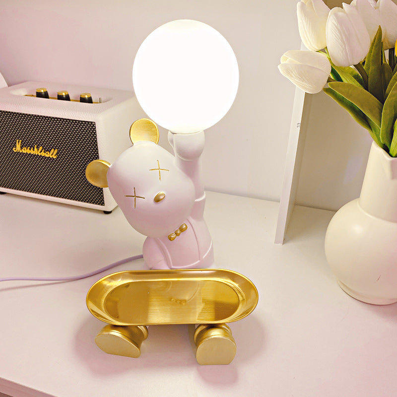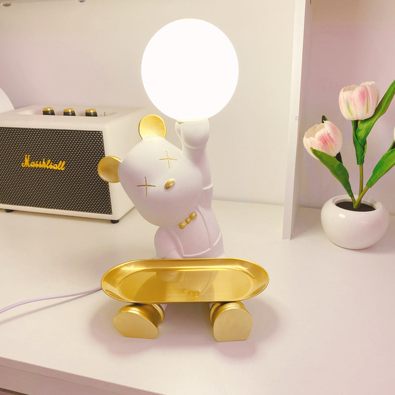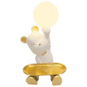 Introducing the Lighteme Cute Bear Desk Lamp. a whimsical fusion of adorable design and sophisticated functionality. Combining resin. metal. and glass. this lamp features a violent bear (a trendy. edgy take on a classic teddy) in stylish poses. offering both warm illumination and clever storage. making it a statement piece for living rooms. bedrooms. or modern workspaces.