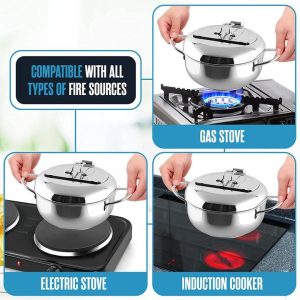 Experience the convenience of a pot that not only prevents dangerous oil splatters but also drains excess oil. making every meal healthier and more delicious.