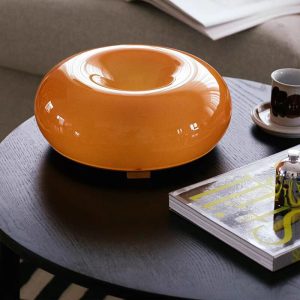 The Lighteme Donut Table Lamp is a whimsical and charming addition to any space. blending modern design with a playful donut motif. Crafted from hand-blown glass. this lamp emits a warm. inviting glow through its vibrant orange or pristine white donut ring. making it a delightful centerpiece for bedrooms. living rooms. or even kitchens. With touch-sensitive controls and three-color LED lighting. it’s both a functional light source and a statement decor piece.