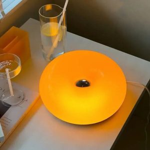 - Donut-Inspired Silhouette: The lamp features a thick. circular glass ring resembling a giant donut. with a smooth. glossy finish. The orange variant mimics the warm hues of a classic glazed donut. while the white option offers a sleek. modern look.