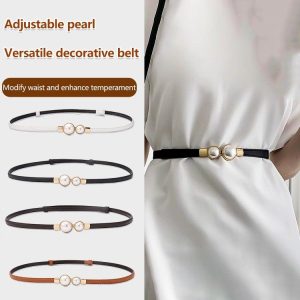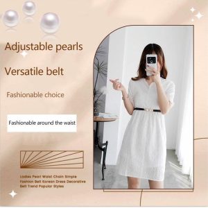 Made from premium PU leather and featuring a double pearl buckle. this waistband adds a touch of luxury to any dress.